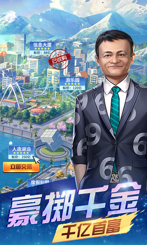 《谁是首富(福利版)》是一款以现代商战为背景的模拟经营养成类游戏。在游戏中,玩家将扮演一个不名一文的小草根,从经营小摊位开始,发展建造自己的产业,通过自己的努力,积累资金并谈判收购地块和其他企业,扩大经营权,涉足更多领域,建造更高端的产业,一步一步壮大自己的经济实力,成为世界知名的企业大亨。同时广纳各行各业各式各样的人才,培养自己的运营管理团队。通过阅读学习经营秘籍,将高屋建瓴的商业投资战略规划和现代商业经营管理完美的结合在一起。 玩家可以通过投资、商战、金融战争、宴会等玩法,获得提升人才能力和建筑等级的道具,在竞争激烈的商业环境下,对抗金融巨头,打造自己的商业帝国。通过游戏,玩家能获得经营策略思维、人才团队培养思维的锻炼,体验创业的乐趣,感受商战对抗的紧张激烈和波谲云诡。