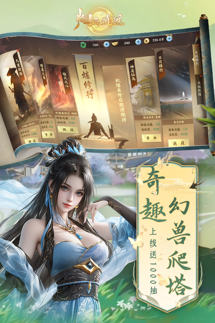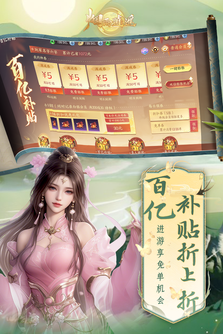 烟雨朦胧锁碧波,一叶扁舟任逍遥。《烟雨逍遥》是小柠互娱联合发行的全新独家返利的国风修仙手游。以细腻逼真的建模、极具中式美学的意境构建一个如梦似幻的仙侠世界。仙侠们可以感受日升月落星辰交替的时光轮回,体验御剑飞行仗剑天涯的快意盎然,选择一念成仙一念成魔的自由剧本。在探索处处皆是奇遇的仙侠世界中通过完成任务、打败BOSS、挑战副本等玩法进行修炼,成就自己的逍遥梦。